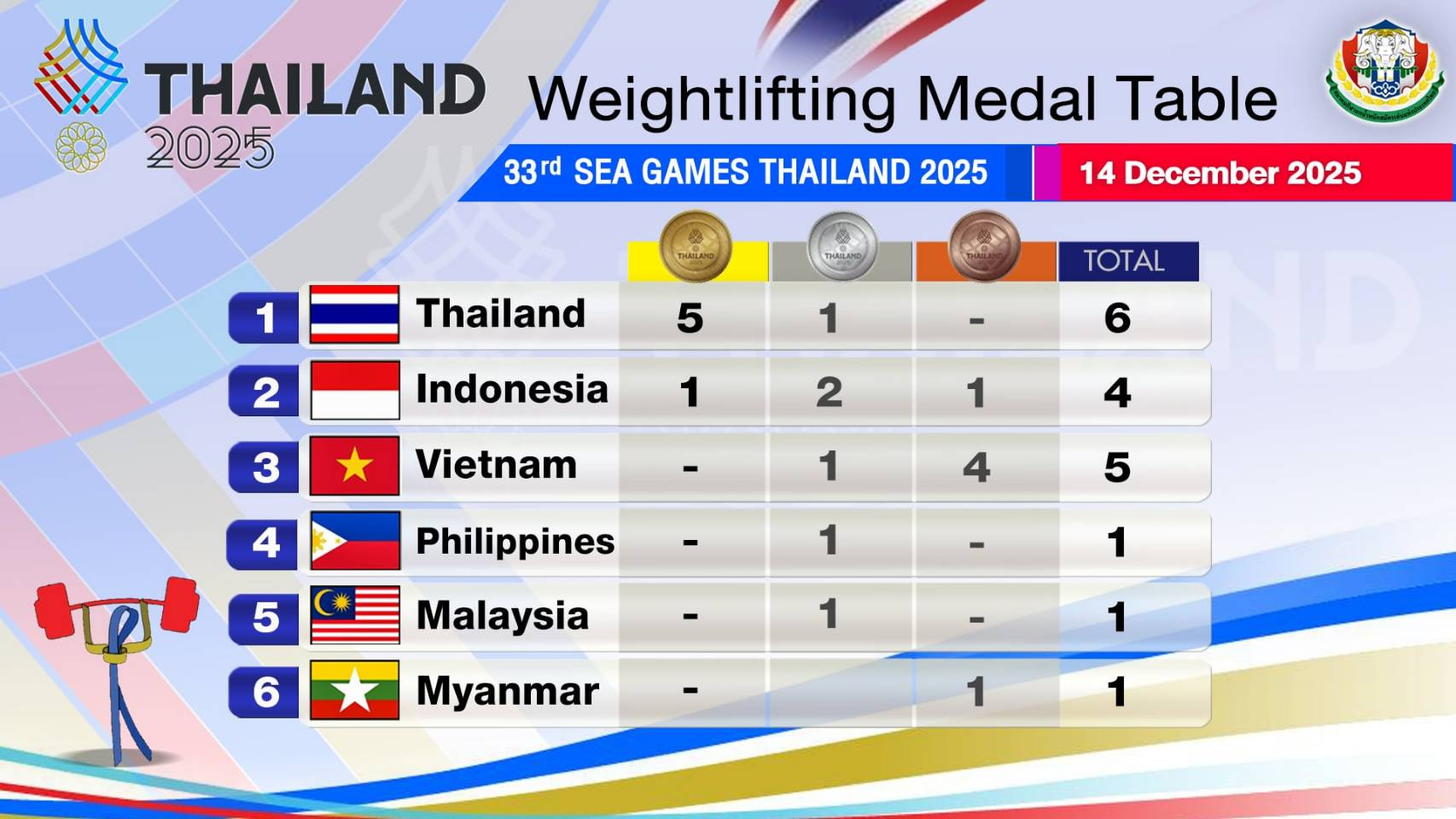 Welcome to the second day of the 2025 SEA Games. Let’s start with Men 65kg and the Gold was belonged to PATSAPHONG THONGSUK (THA). It was very excited with only 1 kg different from the second, MUHAMAD AZNIL BIDIN (MAS), in Snatch. The Thai lifter lifted 307 kg, followed by Malaysian 306 kg and EKO YULI IRAWAN, Beijing 2008 Bronze Medalist, in the third place.