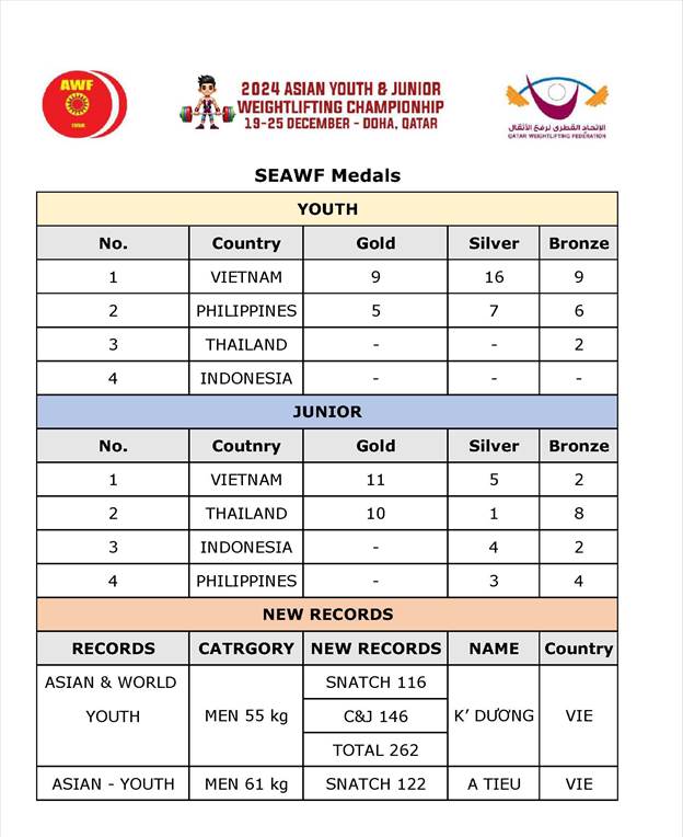 SEAWF Medals in 2024 Asian Youth & Junior Championships!